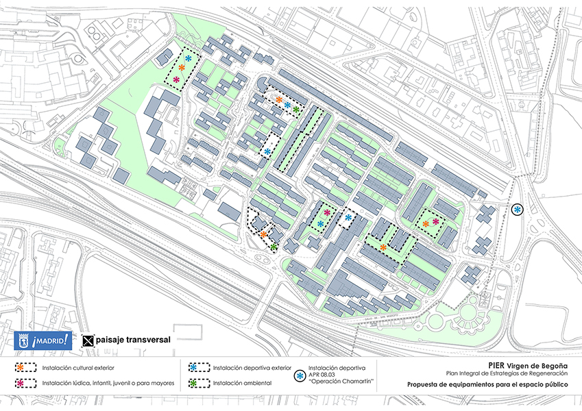 Virgen de Begoña is a neighborhood located in the North of Madrid, and is the site of Paisaje Transversal’s first bottom-up urban regeneration plan. In 2011, we teamed-up with the Neighbors Association of Begoña to initiate an integrative plan of action that would address neighborhood issues such as housing conditions, deterioration of buildings and public spaces, and the need for increased economic opportunity. The neighborhood is home to just over 8,000 residents, with a large aging population that is especially vulnerable.