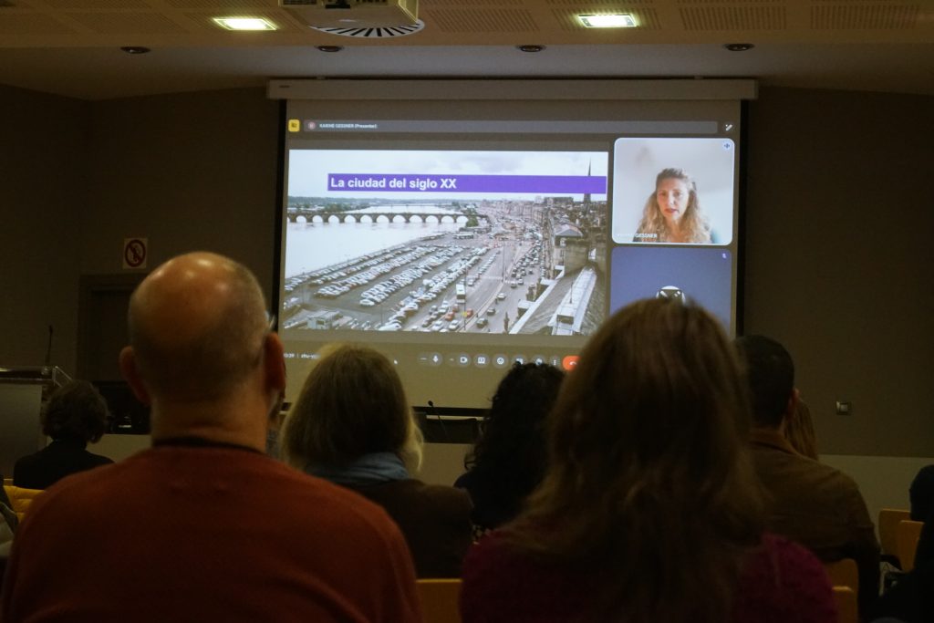 HiriakXNatura/CiudadesXNaturaleza. Presentación del programa Bordeaux Grandeur Nature, a cargo de Karine Gessner, subdirectora general del Departamento de Territorios y responsable del territorio de Burdeos. Fotografía: Paisaje Transversal