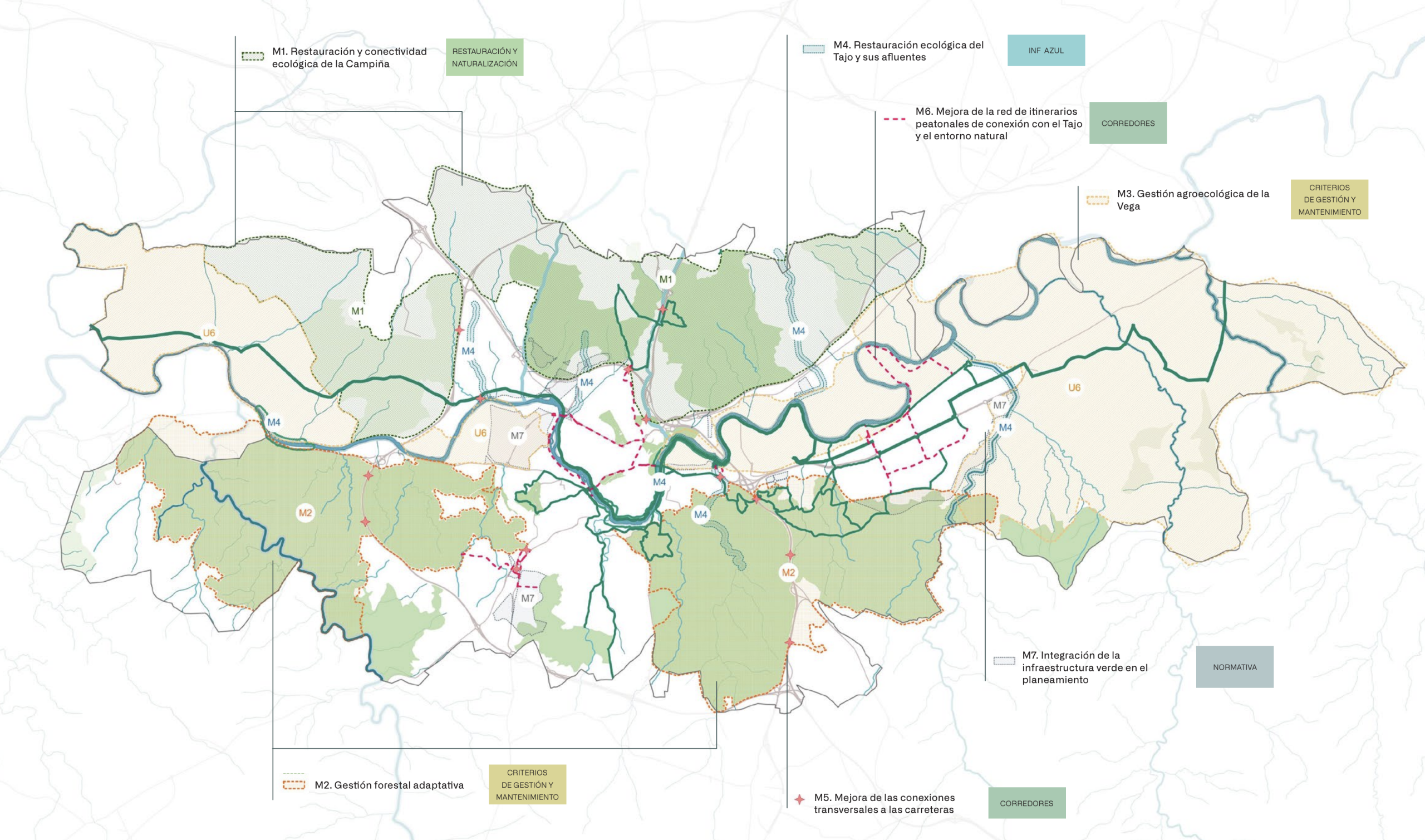 En Toledo, desarrollamos el Plan de Infraestructura Verde y Azul (PIVAT) —desarrollado en el marco de la convocatoria de la Fundación Biodiversidad, con financiación de los fondos Next Generation EU—, un plan orientado restaurar, renaturalizar e incrementar las áreas de infraestructura verde y azul a lo largo de la ribera del río Tajo a su paso por la zona oeste de la ciudad de Toledo, con el objetivo de incrementar su conectividad y contribuir a la mitigación de los riesgos de inundación asociados al área.